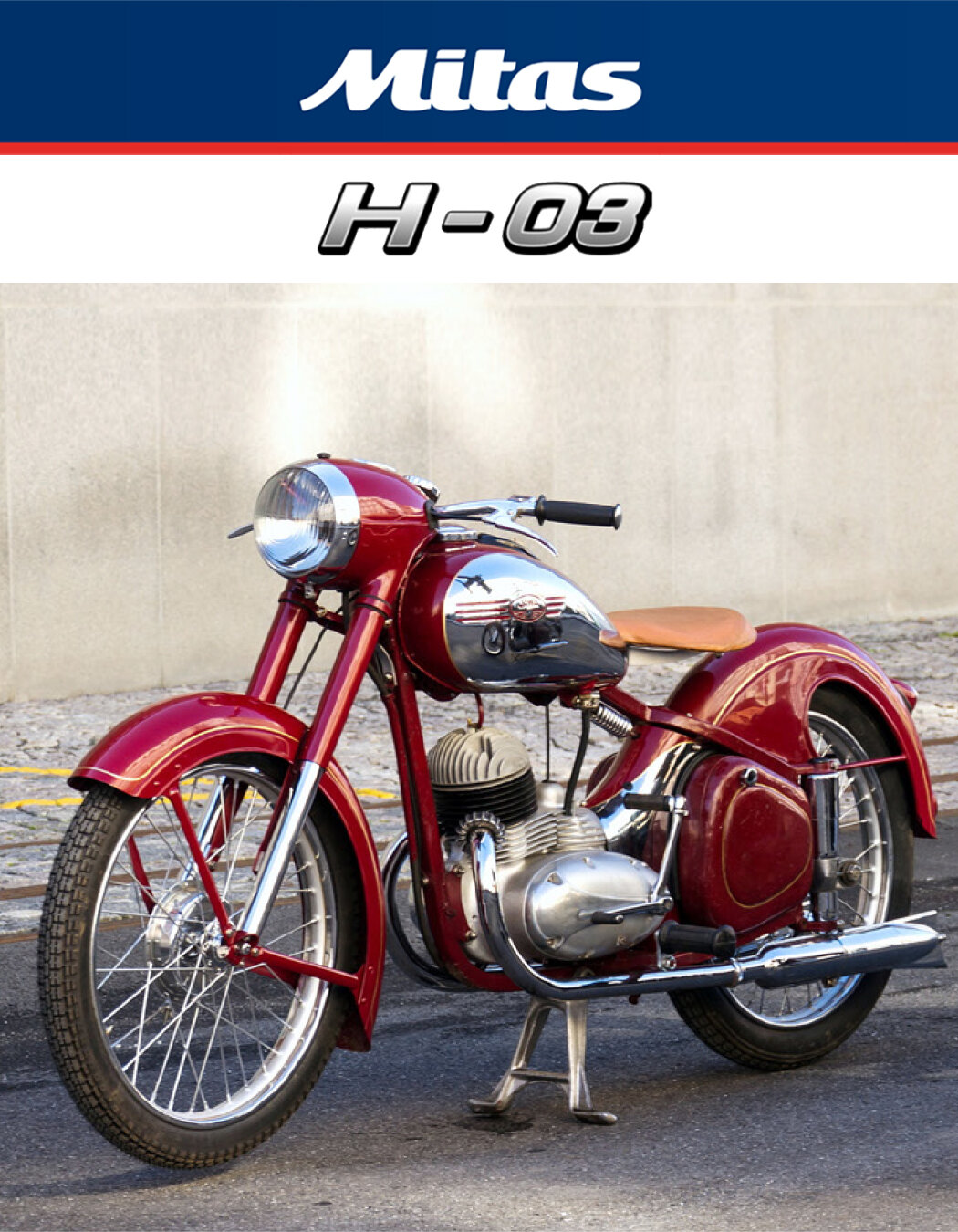 H-03 имеет блочный рисунок протектора, разработанный для винтажных мотоциклов.