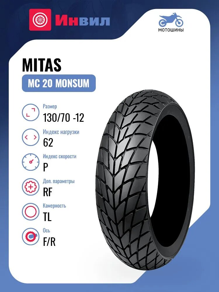 Мотошина Mitas MC 20 Monsum 130/70 -12 62P RF TL F/R: сравнение цен, характеристики, фото, актуальное наличие и цены.