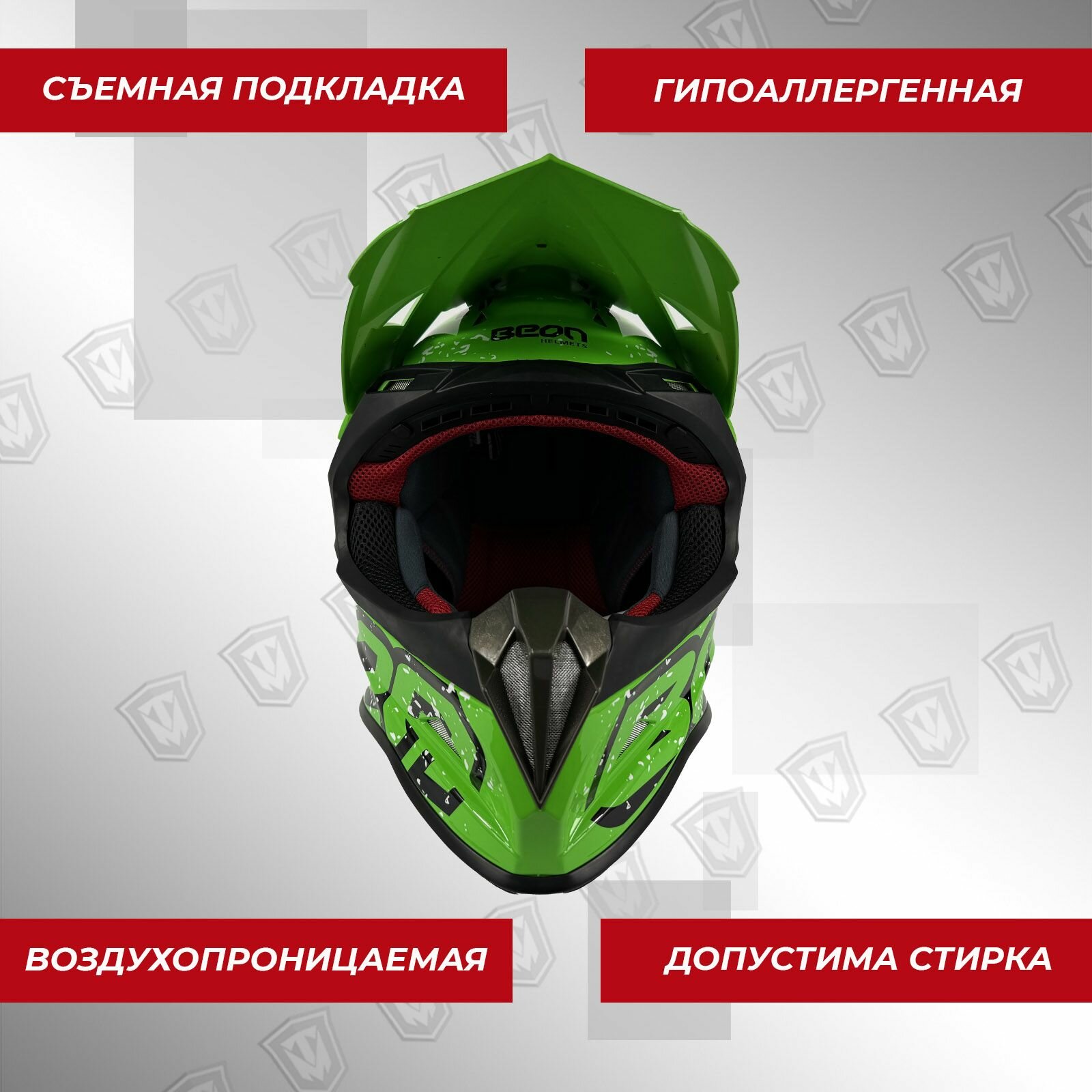 Купить Мотошлем BEON B-602, Green/Black, размер 2XL с доставкой по всей России.