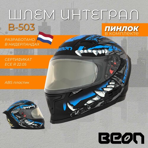Купить Мотошлем Beon интеграл B-503 Stealth Black-Blue Jaws XL с доставкой по всей России.