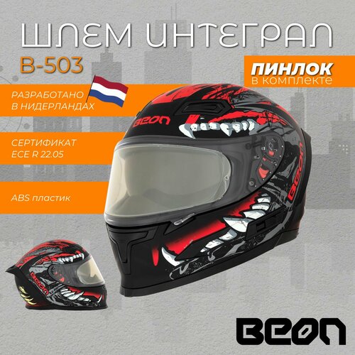 Мотошлем Beon интеграл B-503 Stealth Black-Red Jaws M: сравнение цен, характеристики, фото, актуальное наличие и цены.