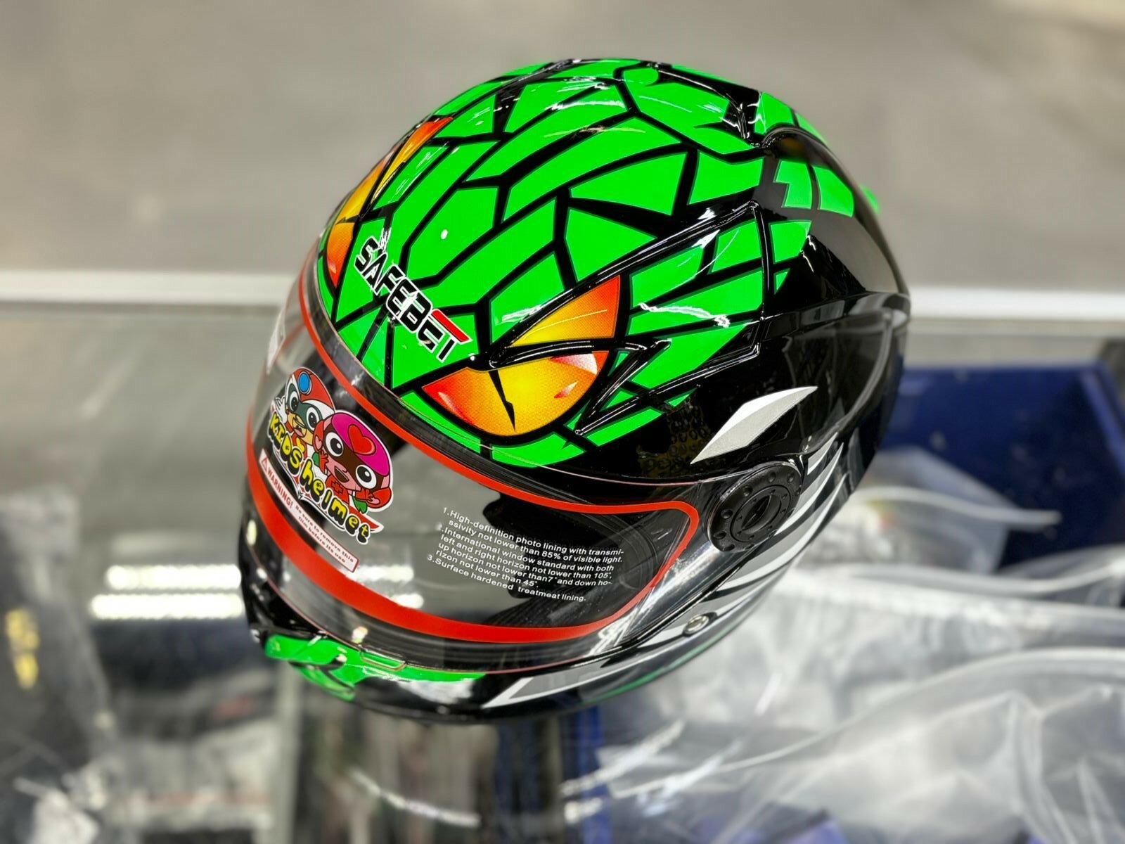 Купить Мотошлем детский (интеграл) HF-909 Black E11 (черный глянцевый с рисунком) с доставкой по всей России.