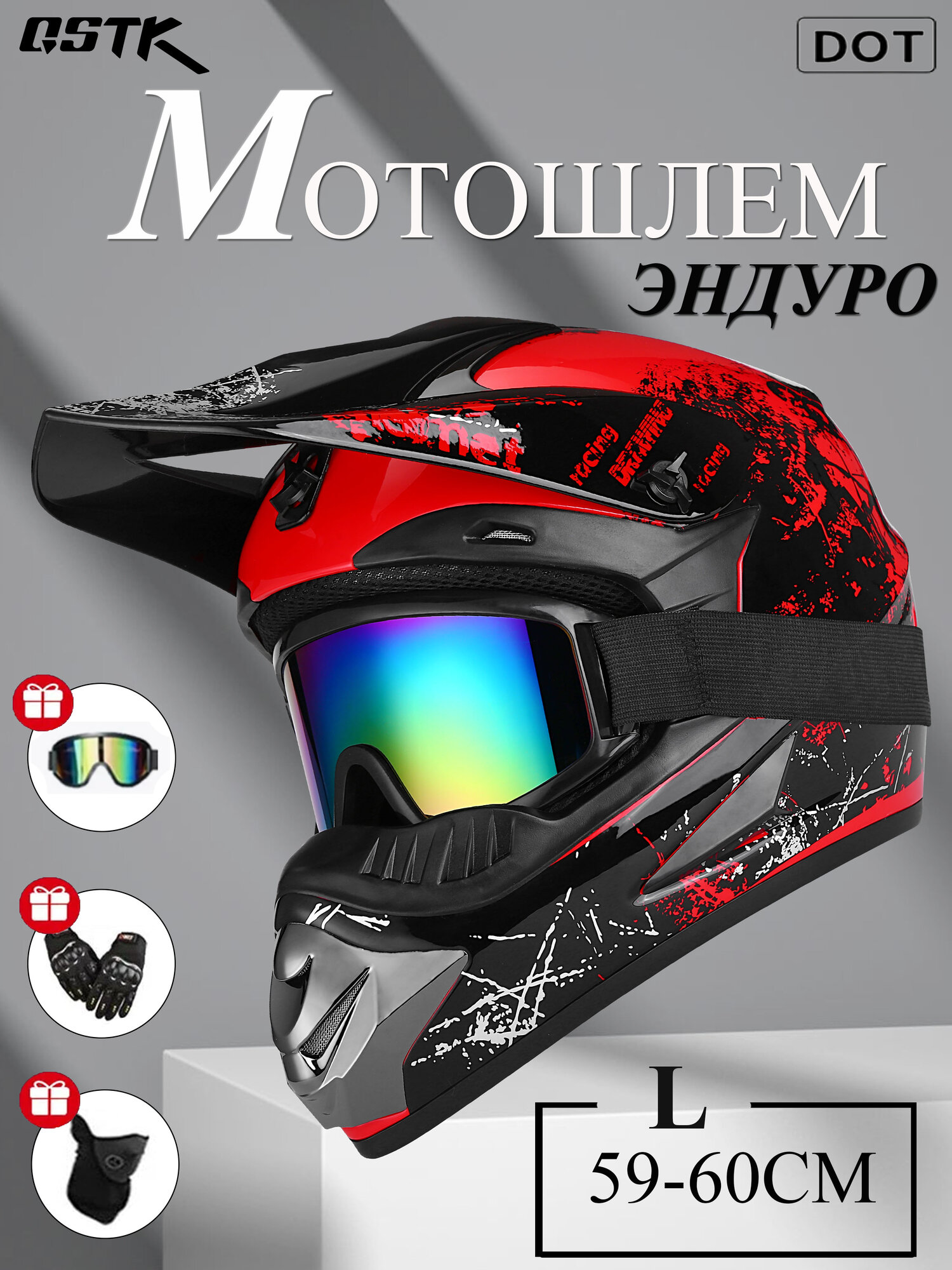 Мотошлем эндуро кроссовый с очками для квадроцикла для мотоцикла L