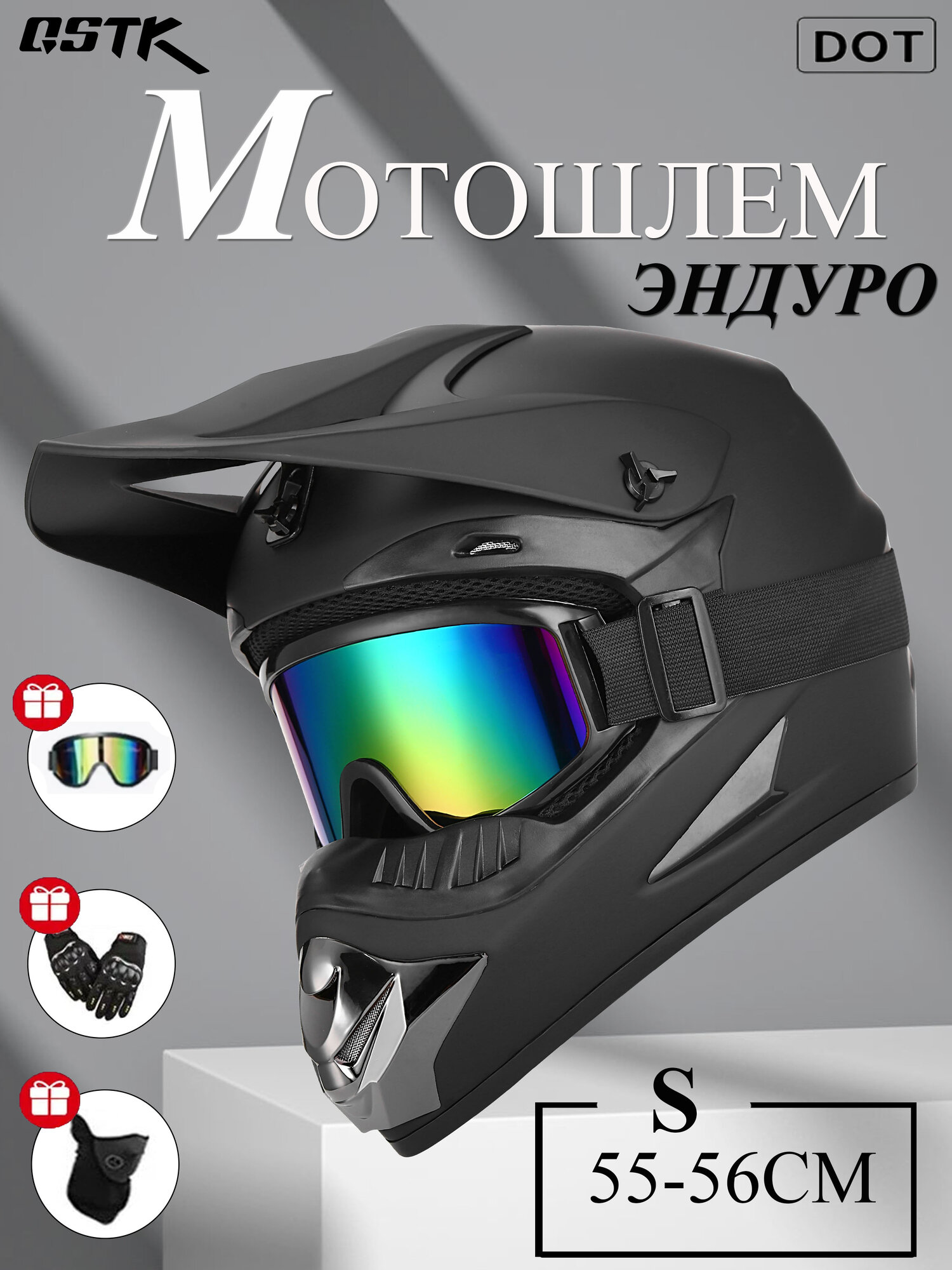 Мотошлем эндуро кроссовый с очками для квадроцикла для мотоцикла S