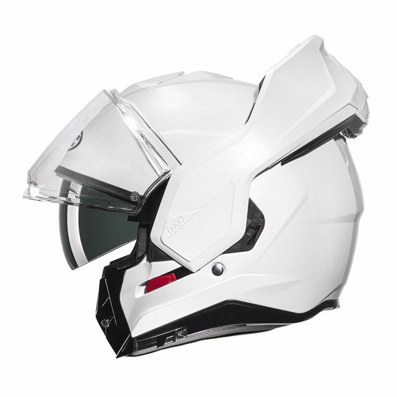 Модуляр-трансформер HJC i100 легко превращается из интеграла в открытый 3⁄4 шлем. Уникальный дизайн позволяет убрать подбородочную часть назад, сохраняя аэродинамический профиль.