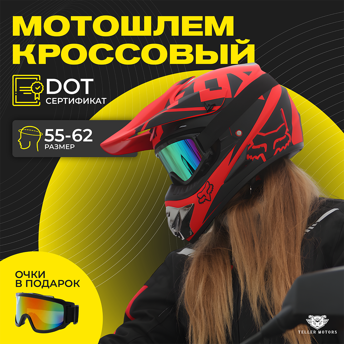 Купить Мотошлем кроссовый Fox Teller Motors, шлем для мотоцикла, питбайка, эндуро, красный, размер L с доставкой по всей России. Мотошлем кроссовый Fox Teller Motors, шлем для мотоцикла, питбайка, эндуро, красный, размер L: сравнение цен, характеристики, фото, актуальное наличие и цены.