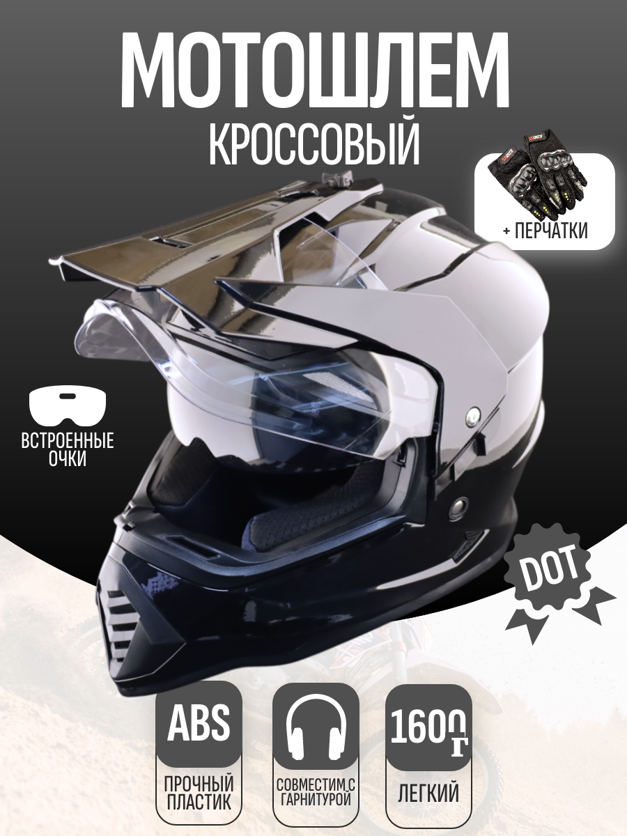 Шлем кроссовый мотард для мотоцикла, +перчатки, визор, + солнцезащитные очки, черный глянец, размер M: сравнение цен, характеристики, фото, актуальное наличие и цены.