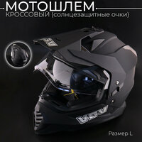 Купить Шлем кроссовый для мотоцикла, визор, +солнцезащитные очки, черный матовый, размер L, VGV с доставкой по всей России.