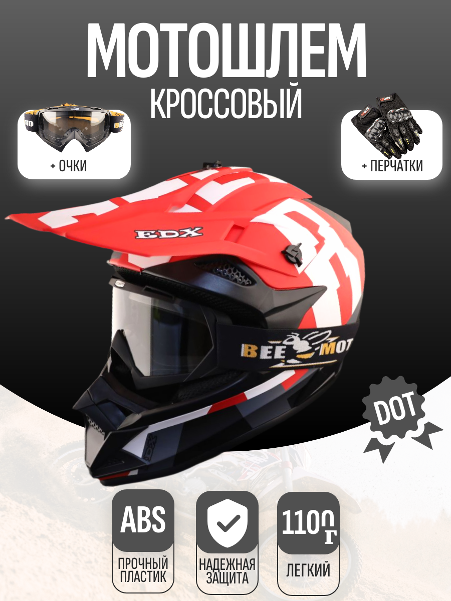 Мотошлем кроссовый +очки, перчатки, для мотоцикла, красный, белый размер M, EDX: сравнение цен, характеристики, фото, актуальное наличие и цены.