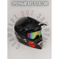 | Дополнительная информация | кроссовый шлем с амортизирующим козырьком; мото очки и чехол в подарок; надежный фиксатор;мягкая подкладка; прочный ABS пластик; |