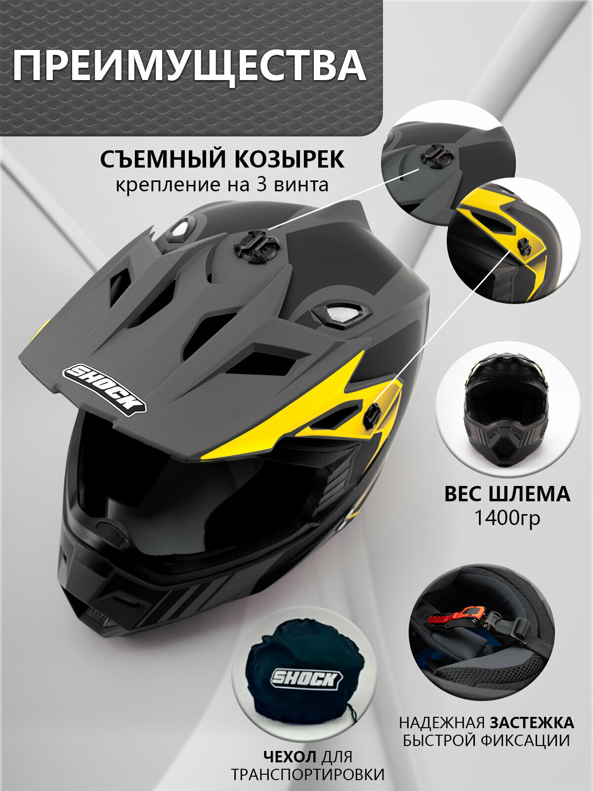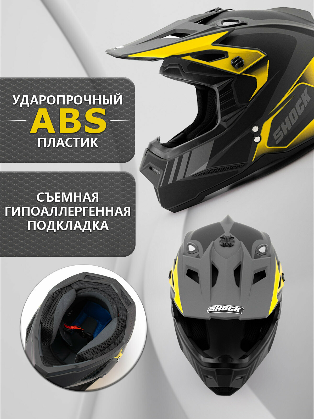 Купить Мотошлем кроссовый SHOCK NEW MATT GREY/BLACK YELLOW размер S для мотоциклиста с доставкой по всей России. Мотошлем кроссовый SHOCK NEW MATT GREY/BLACK YELLOW размер S для мотоциклиста: сравнение цен, характеристики, фото, актуальное наличие и цены.