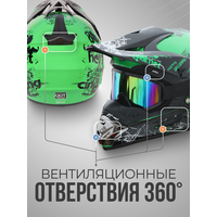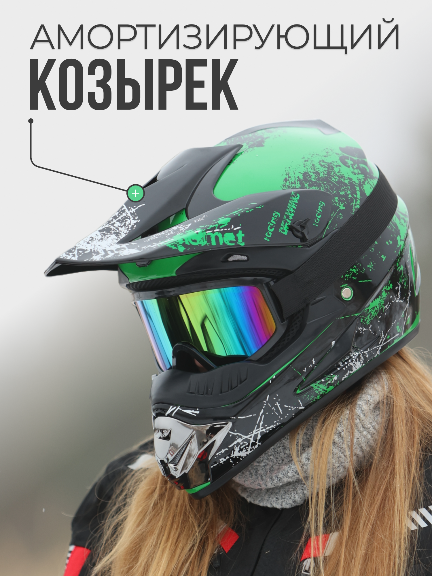 Мотошлем кроссовый Teller Motors, шлем с очками для эндуро, черный, зеленый, размер XL, 57-61: сравнение цен, характеристики, фото, актуальное наличие и цены.