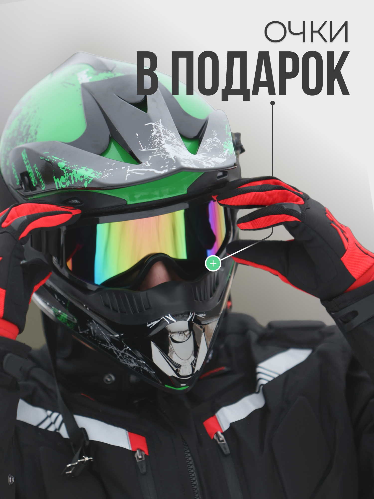 Купить Мотошлем кроссовый Teller Motors, шлем с очками для эндуро, черный, зеленый, размер XL, 57-61 с доставкой по всей России.