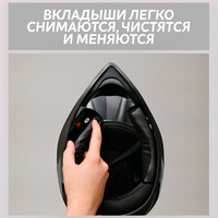 Шлем выполнен из экологичного материала с мягкой, съемной подкладкой для удобства очистки. Обеспечивает хорошую вентиляцию благодаря отверстиям и верхней вентиляции, что сохраняет голову прохладной в любое время года. Легкий и эргономичный дизайн снижает нагрузку на голову и улучшает комфорт при езде. Предохранительная пряжка и фиксированная основа линз обеспечивают надежную фиксацию. Материал: АБС + хлопок. Окружность головы: S (55-56 см), M (57-58 см), L (59-60 см), XL (61-62 см). Вес: 1150 г.