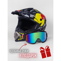 Купить Мотошлем, шлем кроссовый Teller Motors с очками мотоциклетный, для эндуро, размер L с доставкой по всей России.