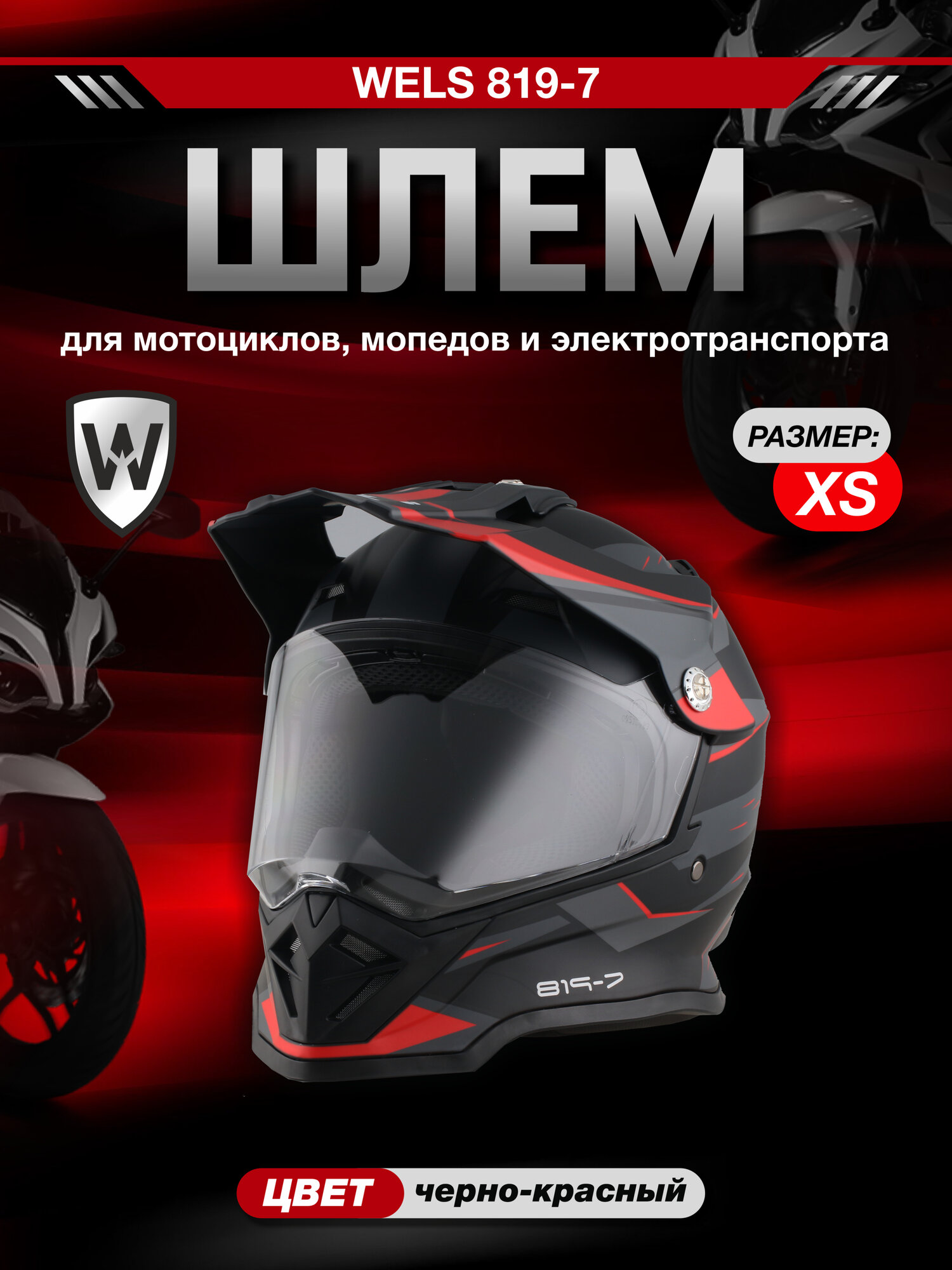 Купить Мотошлем WELS 819-7, DOT (819-7 А), черно-красный, XS с доставкой по всей России. Мотошлем WELS 819-7, DOT (819-7 А), черно-красный, XS: сравнение цен, характеристики, фото, актуальное наличие и цены.