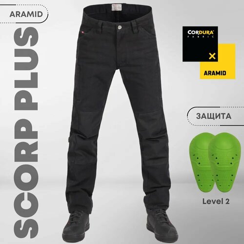 Купить Мотоштаны с арамидом INFLAME SCORP PLUS, цвет черный, размер 38 удлиненный с доставкой по всей России.
