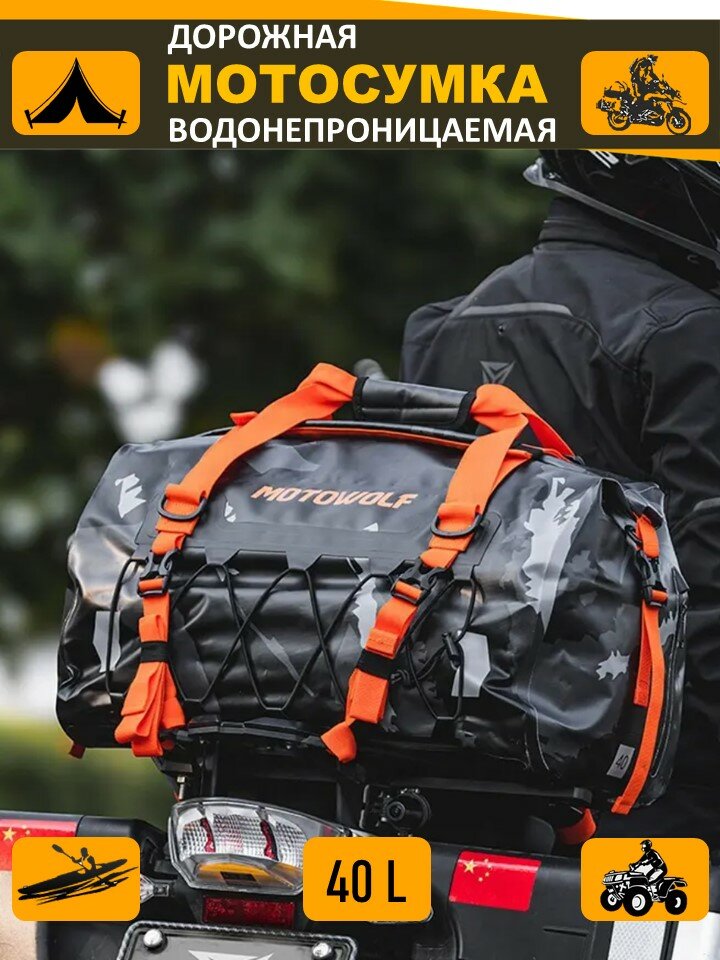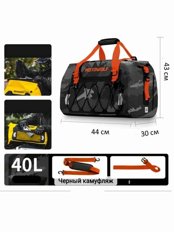 Дорожная сумка для мотоцикла, водонепроницаемая мотосумка на багажник и сиденье, объем 40 литров, черный камуфляж: сравнение цен, характеристики, фото, актуальное наличие и цены.