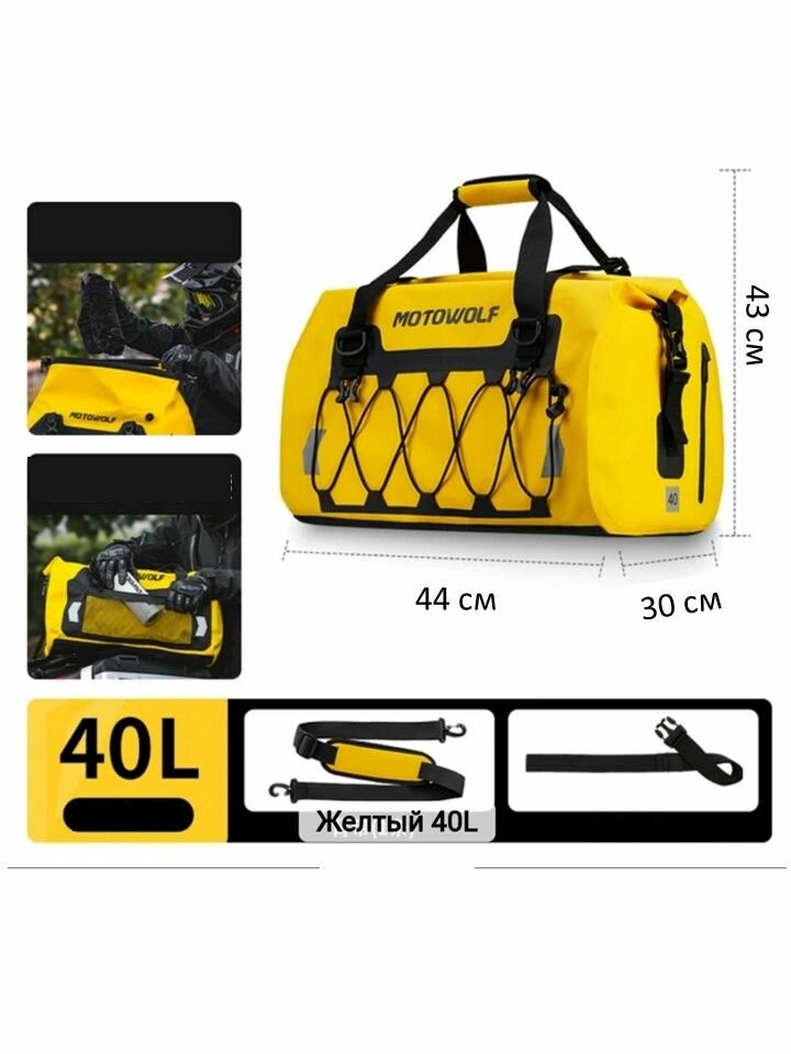 Дорожная сумка для мотоцикла, водонепроницаемая мотосумка на багажник и сиденье, объем 40 литров, желтая: сравнение цен, характеристики, фото, актуальное наличие и цены.