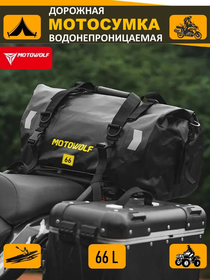 Дорожная сумка для мотоцикла, водонепроницаемая мотосумка на багажник и сиденье, объем 66 литров, черная: сравнение цен, характеристики, фото, актуальное наличие и цены.
