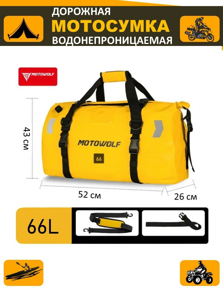 Дорожная сумка для мотоцикла, водонепроницаемая мотосумка на багажник и сиденье, объем 66 литров, желтая: сравнение цен, характеристики, фото, актуальное наличие и цены.
