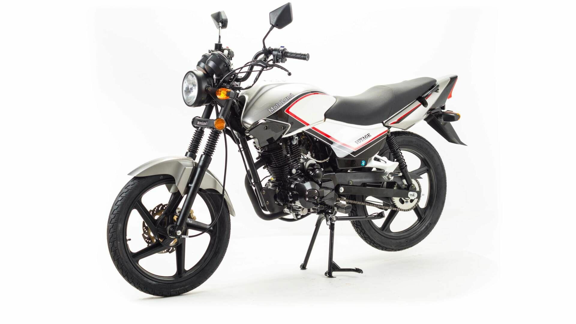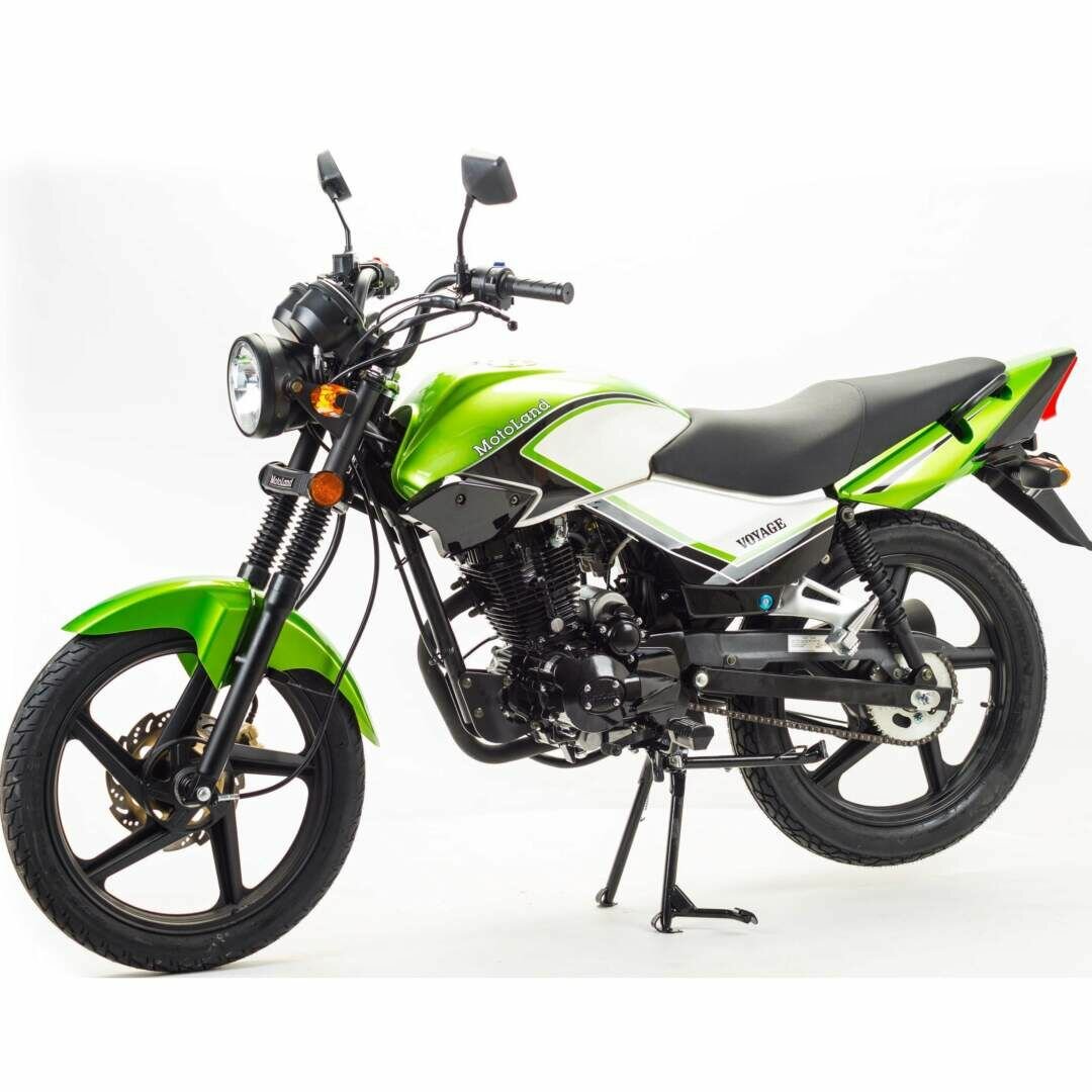 Мотоцикл MOTOLAND VOYAGE 200 универсален, он подходит как для любителей скорости и поездок на дальние расстояния, так и для неторопливых прогулок. Также модель обладает отличным дизайном и характеристиками. Стальная рама. Пластиковый бак объемом 7л. Расход топлива 3,7л. на 100км. Базируется на одноцилиндровом 4-тактном двигателе 164FMMвертикального типа, который способен выдавать 13 «лошадей» максимальной мощности. Работа подвески мотоцикла организована на базе стандартных компонентов: передней телескопической вилки (комплектуется защитой перьев) и двух задних амортизаторов. Размер колес 17/17. Колесные диски литые. Широкое удобное сиденье, большие пассажирские подножки, кожух защиты цепи. Фара, электронное зажигание, приборная панель. Рабочий объём-250