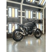 Но технические характеристики, пожалуй, не самое главное в этом мотоцикле. Стиль – вот что доминирует в облике Scrambler 250 Air! Никакого пластика: выполненные из шлифованного алюминия детали – переднее и заднее крыло, хаггер, боковые накладки – выглядят по-настоящему круто. Сваренный из нержавеющей стали глушитель добавляет брутальности образу, а установленные в торцах руля круглые зеркала завершают образ классического скремблера.