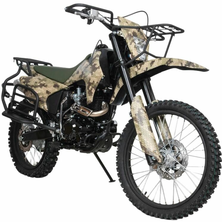 Мотоцикл 300 Military, выполненный в камуфляжном окрасе, сочетает в себе стильный дизайн и высокие технические характеристики. Его корпус покрыт прочной пленкой с классическим камуфляжным узором, что придает ему брутальный и тактический вид. Модель оснащена мощным 300-кубовым двигателем, обеспечивающим отличную динамику и проходимость по различным типам местности. Конструкция мотоцикла включает усиленную раму, надежные амортизаторы, большое кол-во защитных элементов, передний и задний багажник, а также две большие боковые подножки, что делает его идеальным для активного отдыха, экстремальных поездок или путешествий по бездорожью. Этот мотоцикл отлично подходит для тех, кто ценит стиль, надежность и универсальность в условиях природы и приключений. Благодаря своей прочности и функциональности, он способен выдерживать тяжелые условия эксплуатации и обеспечивать комфорт даже в самых сложных ситуациях. Он идеально подходит для любителей экстремальных видов спорта, охотников, туристов и военных специалистов. Высота по седлу (мм)-860 Высота до руля (мм) -1200 Габариты в коробке (ДхШхВ) 1480х600х680 Габариты в собранном состоянии (ДхШхВ) 2080х800х1200