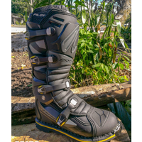 Новые PILOT ENDURO — это технологичные и прочные ботинки, предназначенные для бездорожья. Мотоботы оснащены обновленным шарниром FCS, который не соединен с верхней частью ботинка. Что обеспечивает защиту от неестественного скручивания и в то же время свободу движений ноги. Регулируемые застежки надежно фиксируют ногу, а резиновая подошва обеспечивает хорошее сцепление, которое особенно нужно в ваших энудро поездках. Основными достоинствами FORMA PILOT ENDURO являются высокая информационная чувствительность и защита на уровне мотокроссовых ботинок.