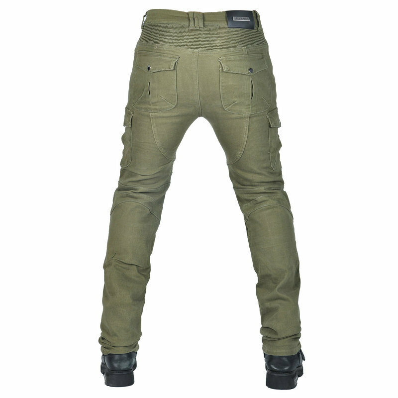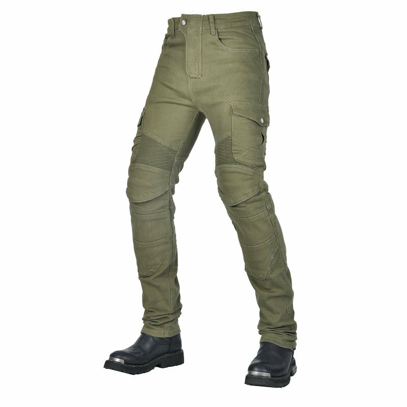 Благодаря своему зеленому цвету в стиле милитари и стилю рабочей одежды, эти джинсы не только обеспечивают защиту, но и стильный внешний вид. Они подходят для езды на мотоцикле, а также для занятий другими видами спорта и активного отдыха, обеспечивая гибкость в использовании.