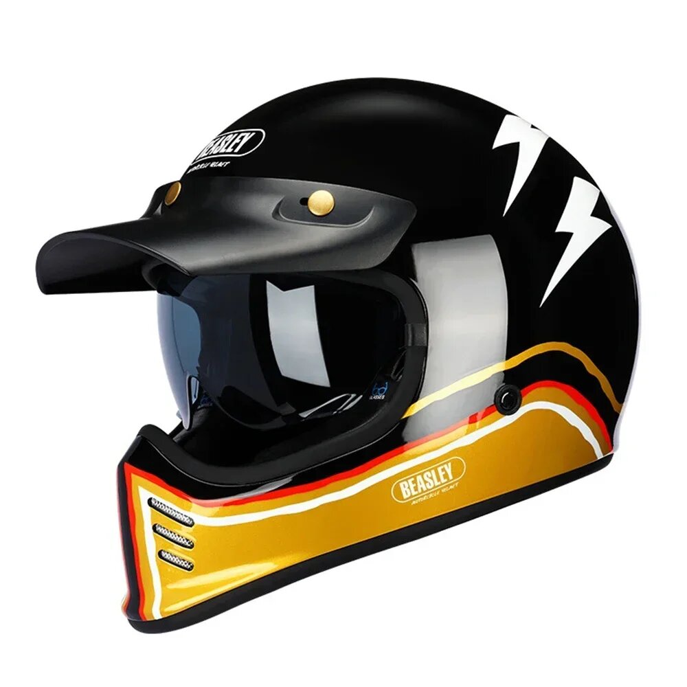 Мотоциклетный шлем анфас сертификация ECE мужские винтажные ретро мотошлемы дышащие безопасные двойные линзы мотокросс мотоцикл, XL, Черный, Унисекс