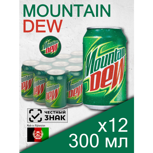 Mountain Dew 0.3 л — упаковка 12 жестяных банки (производство Афганистан).