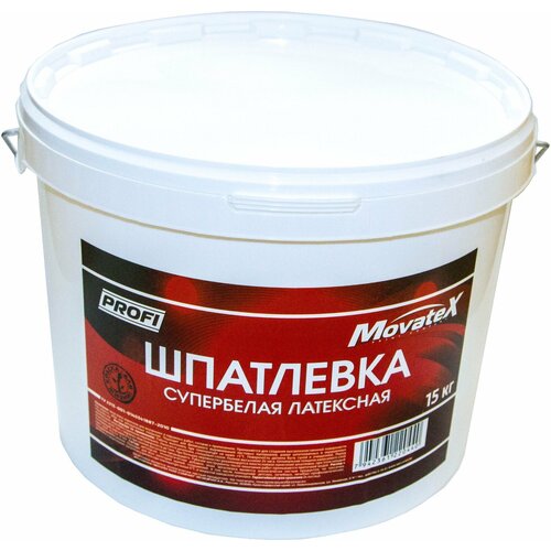 Movatex Шпаклевка латексная супербелая 15 кг Т02351 - это высококачественный продукт, предназначенный для финишной обработки шпаклюемых поверхностей.