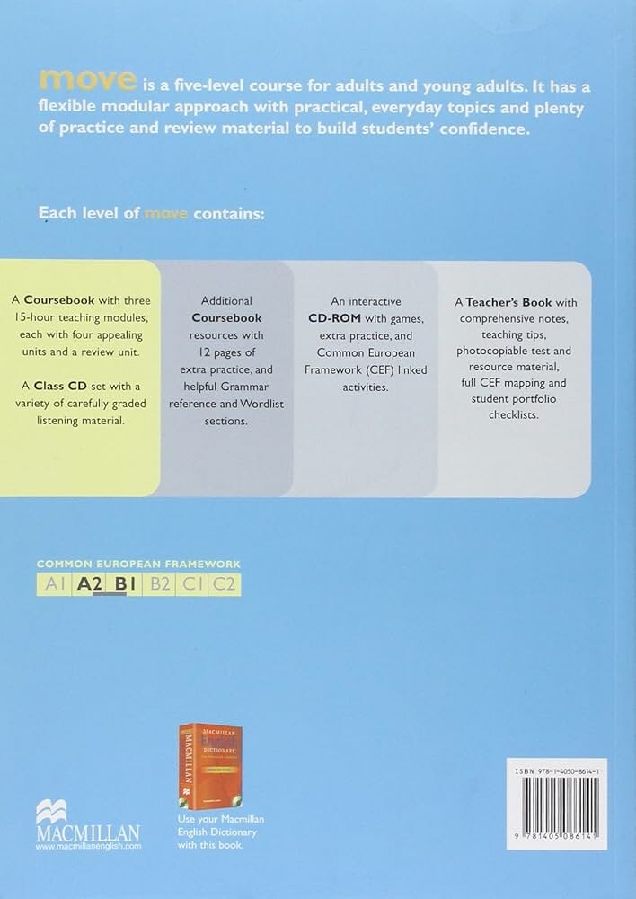 Move - краткосрочный курс современного английского языка для взрослых. Каждый уровень учебника состоит из трех тематических модулей и рассчитан на 45 часов аудиторных занятий. При необходимости количество часов может быть увеличено с привлечением дополнительных ресурсных материалов из Книги для учителя и CD-ROMа. Благодаря этому пособие идеально подходит для программ с различным, но относительно небольшим количеством часов.