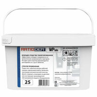 Средство представлено в удобной упаковке – пластиковом ведре, содержащем 25 таблеток. Вес упаковки составляет 1,5 кг.
