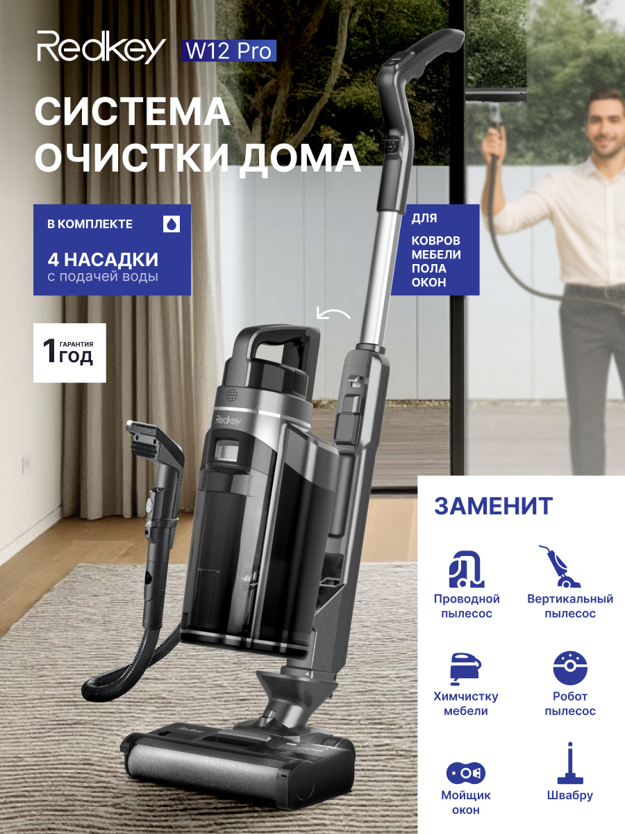 | В комплекте | зарядное устройство, электрощетка, турбощетка, удлинительная трубка/шланг, дополнительный контейнер для мусора, универсальная насадка для влажной уборки, щеточка для очистки, щелевая насадка, насадка для мягкой мебели, насадка для сбора жидкости, насадка для мойки окон, крепление для дополнительных насадок на трубу |