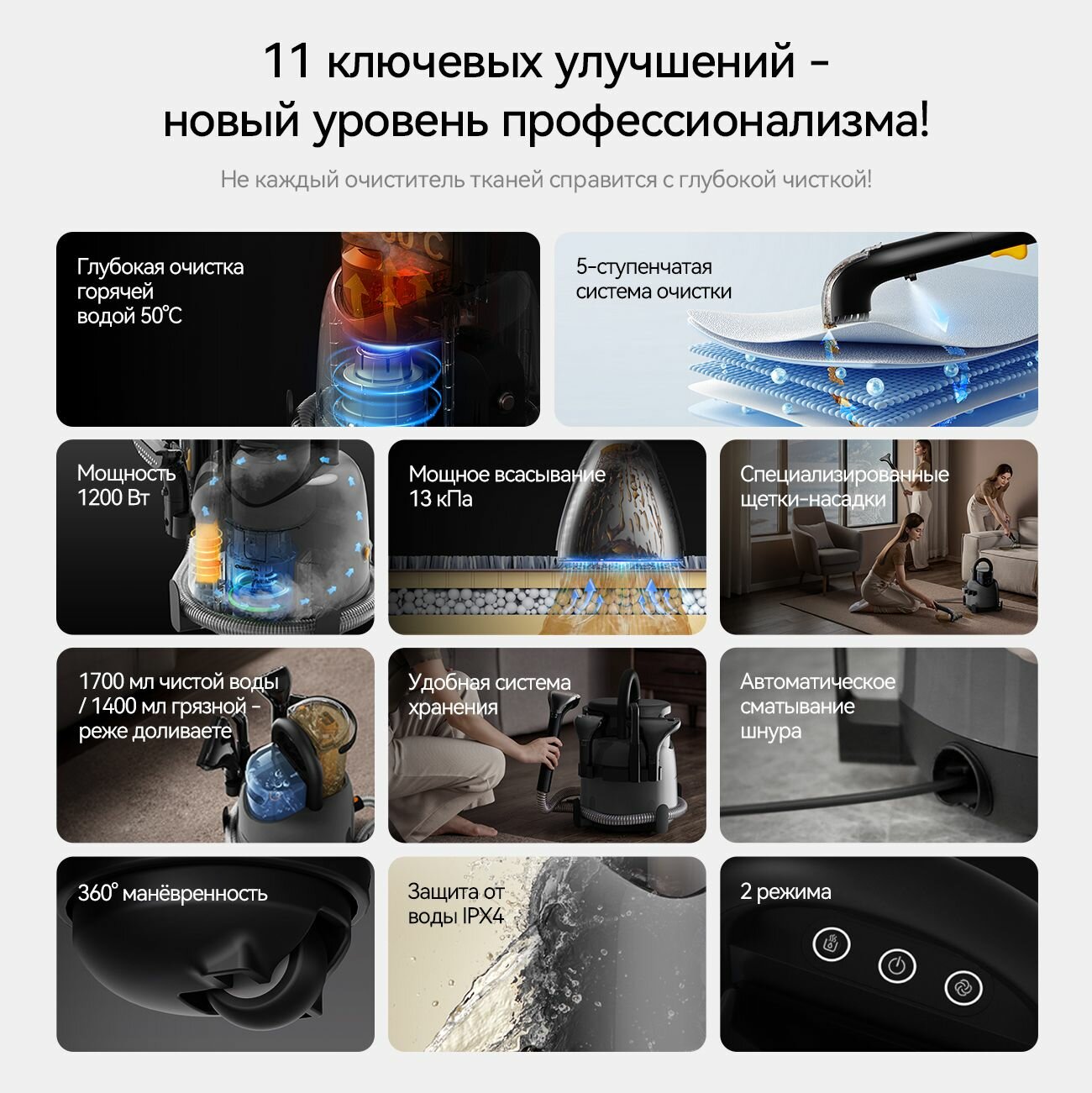 Моющий пылесос Deerma BY200NEW, 13 кПа, нагрев 50°C, 3 насадки, 1200 Вт, шланг 1.5 м, кабель 5 м, Для чистки ковров.: сравнение цен, характеристики, фото, актуальное наличие и цены.