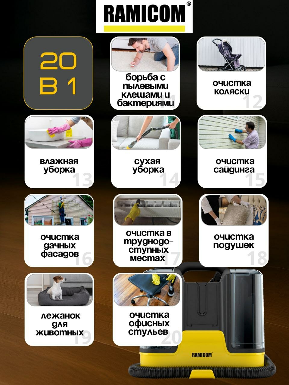 Моющий пылесос для химчистки дома, автомобиля и мебели Ramicom RWC3000