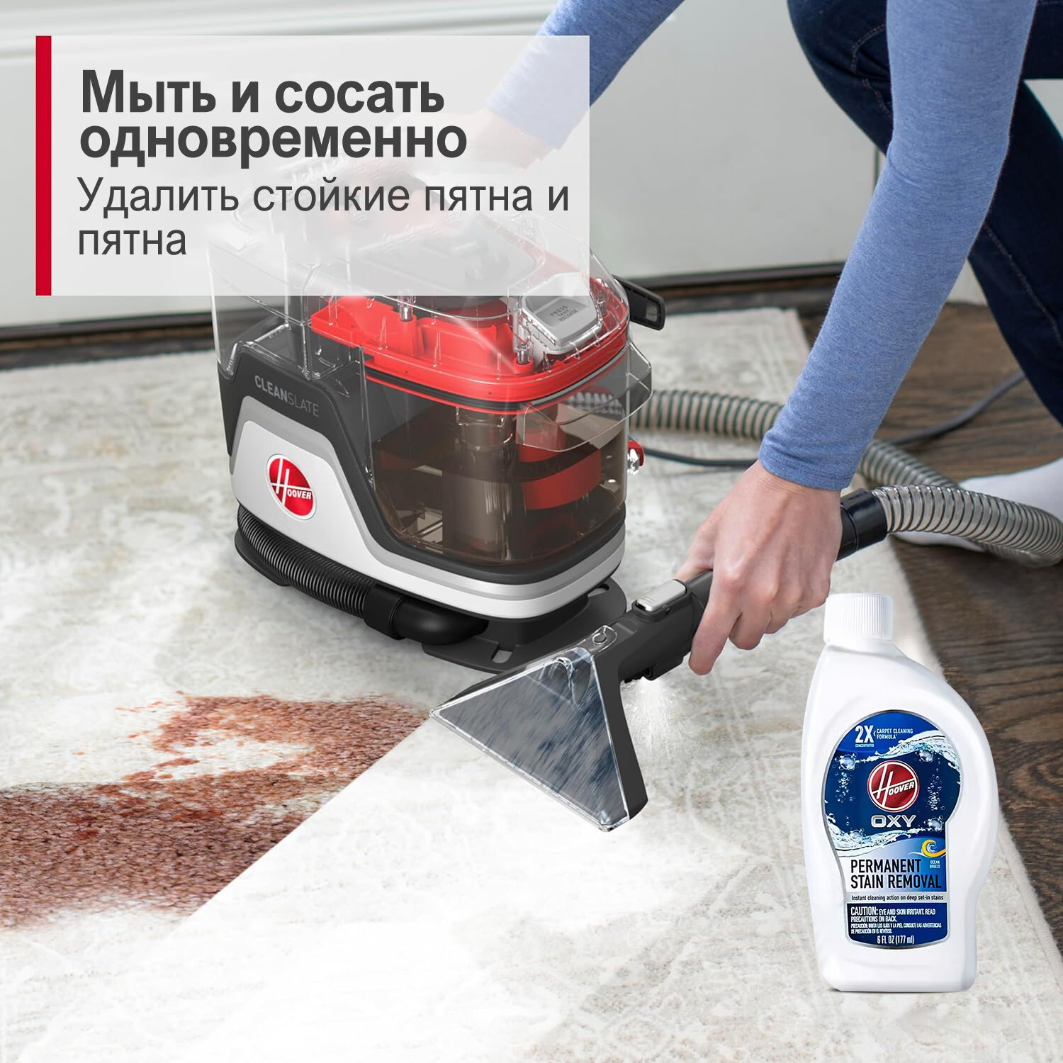 сочетайте С раствором для чистки HOOVER: Для яркого и свежего дома используйте CleanSlate Plus с раствором для чистки ковров Hoover. Справляйтесь с загрязнениями от животных с помощью нашей формулы для домашних животных или очищайте повседневные пятна с помощью наших универсальных решений.
