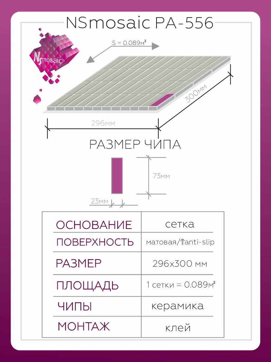 Мозаика керамическая NSmosaic PA-556, серая матовая, 296×300 мм, упаковка 5 шт: сравнение цен, характеристики, фото, актуальное наличие и цены.