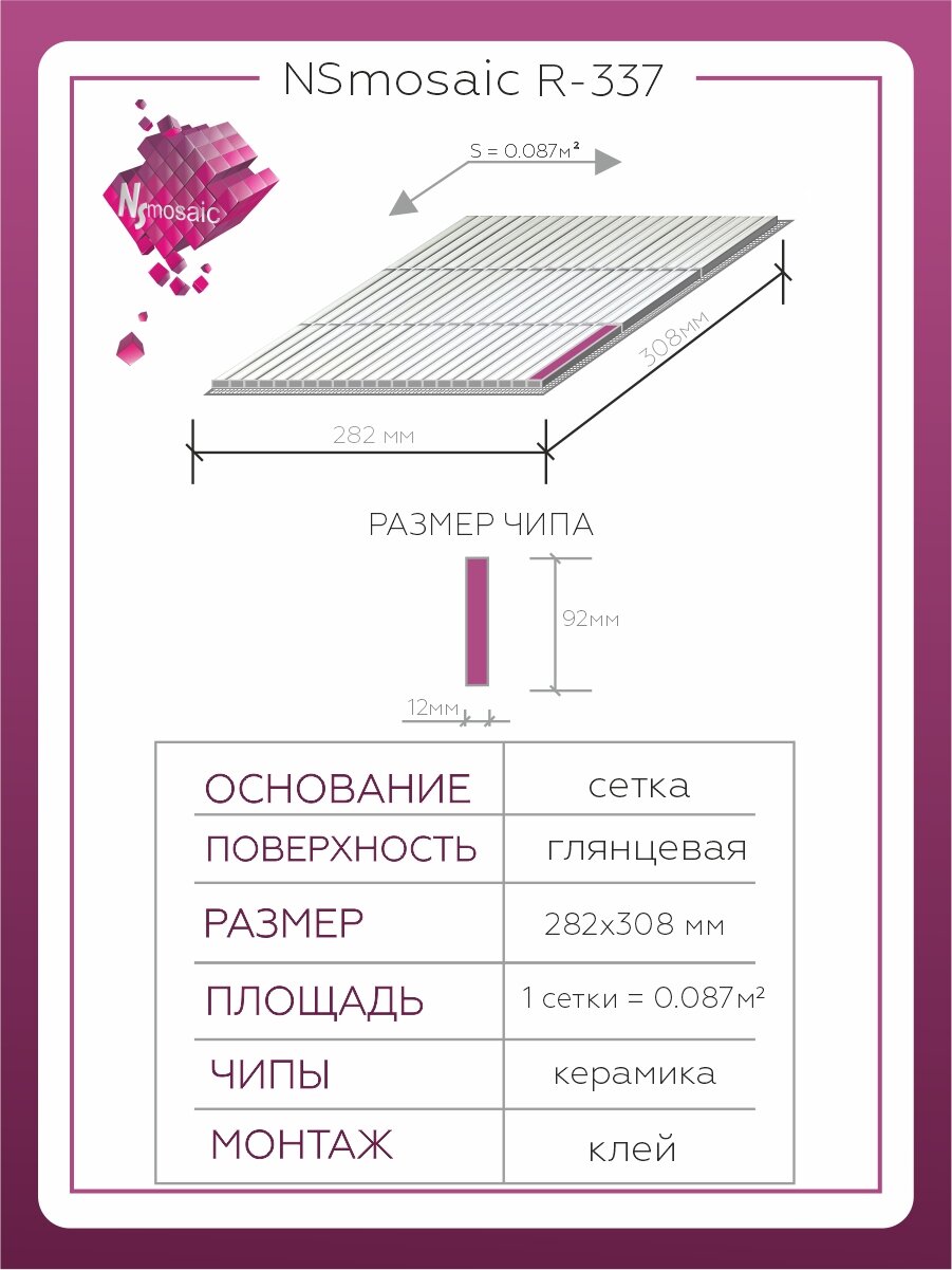 Мозаика керамическая NS mosaic R-337, бежевая глянцевая, 282х308 мм, упаковка 5шт: сравнение цен, характеристики, фото, актуальное наличие и цены.