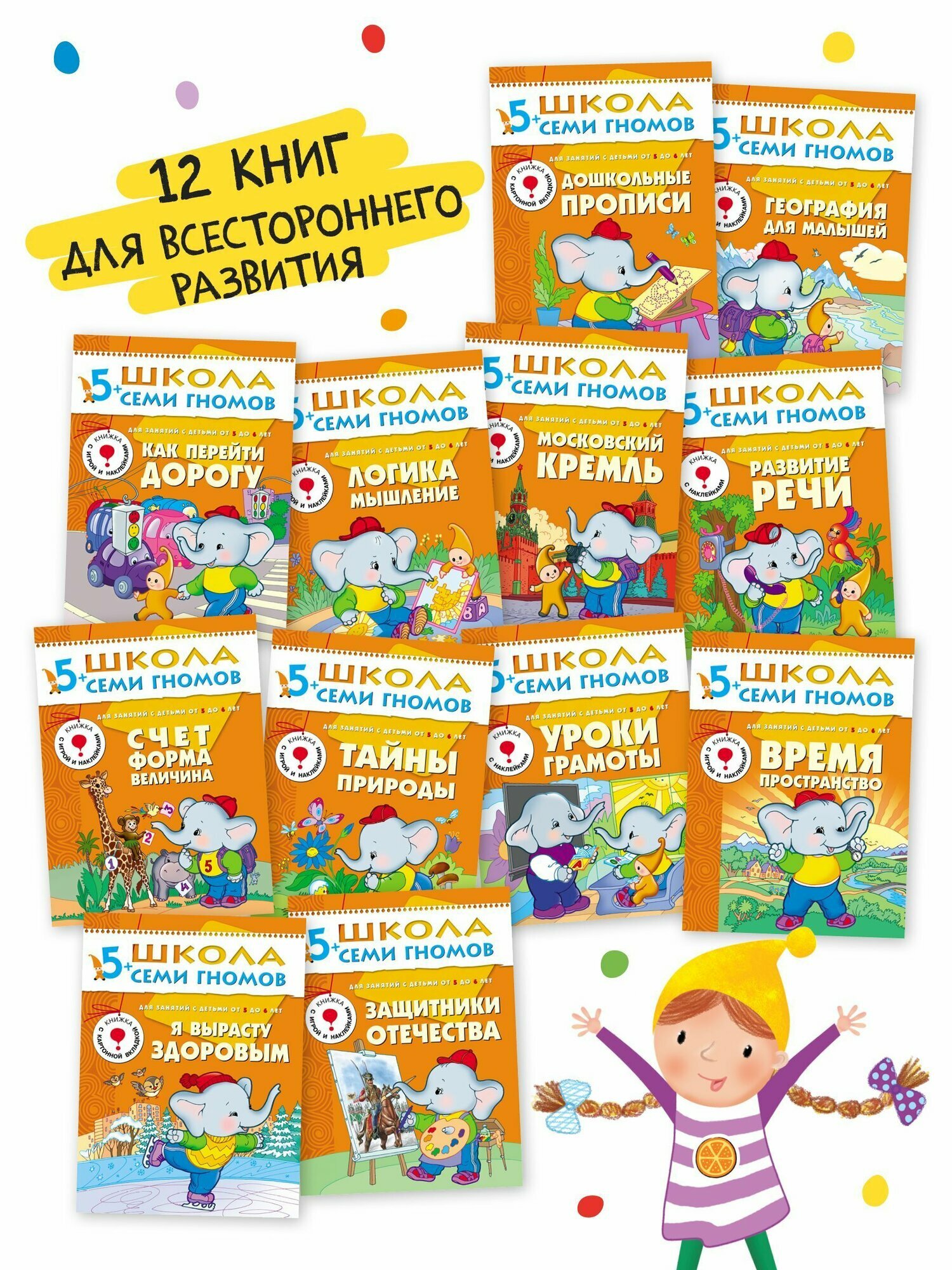 Комплект развивающих книг «Школа Семи Гномов» 5+ – это множество интересных задач и удивительных головоломок, расширяющих кругозор вашего ребенка. Этот набор соответствует ФГОС и предназначен для детей от 5 до 6 лет, а каждая книжка разработана с учетом возраста и потребностей малышей.