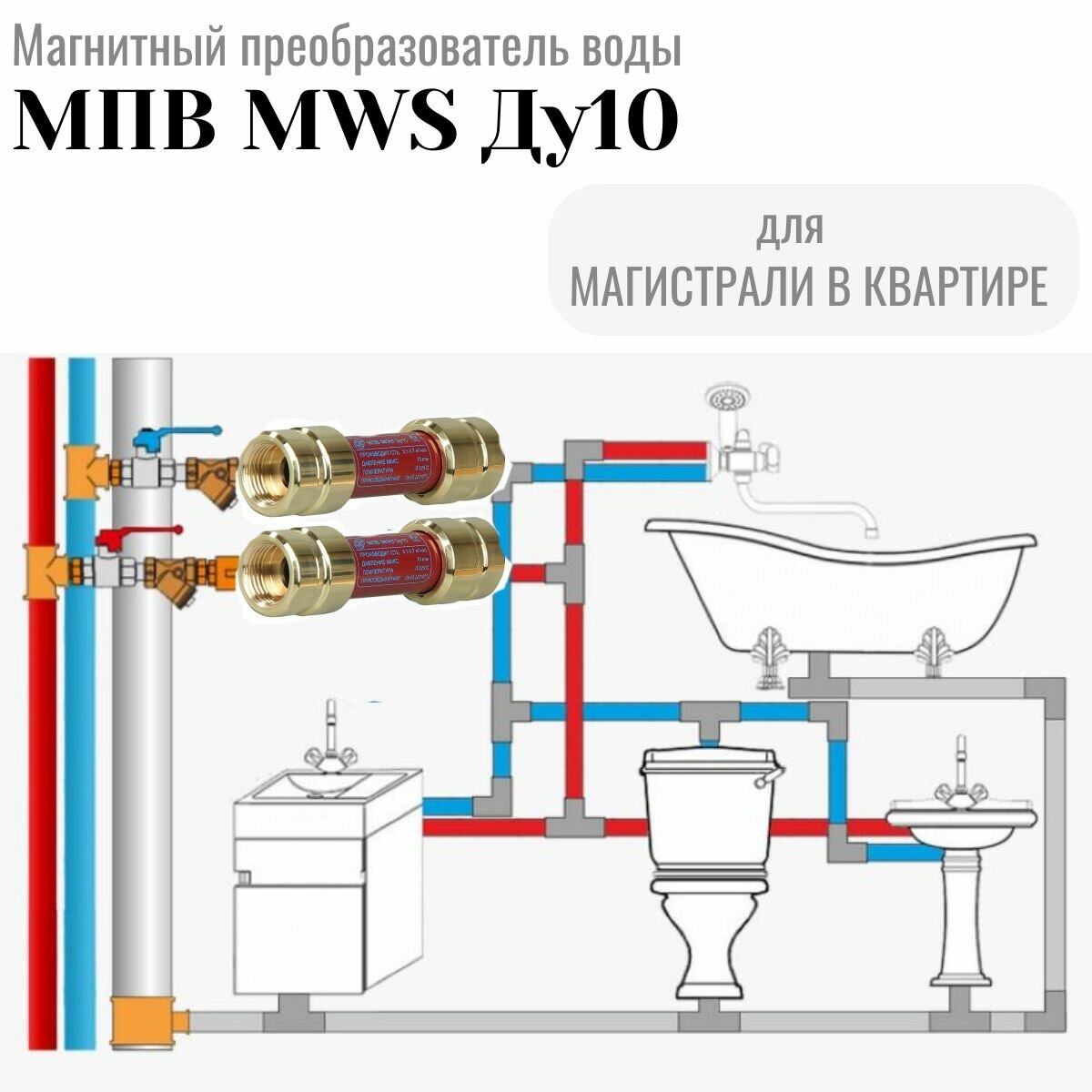 Магнитный преобразователь воды МПВ MWS Dy 10 - устройство из нескольких постоянных магнитов, позволяющих защитить трубы и оборудование (водонагреватели, котлы, стиральные и посудомоечные машины и пр.) от известкового налета. При применении магнитного преобразователя для новых труб и оборудования обеспечивается защита от оседания накипи и образования очагов коррозии. При установке преобразователей для уже эксплуатирующегося оборудования и старых труб, производится постепенная очистка от существующих отложений и формируется защитный антикоррозийный слой.