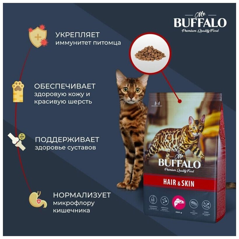 Корм сухой Mr. Buffalo Adult Hair & Skin Natural Vitality лосось для кошек здоровье кожи и шерсти (1,8 кг): сравнение цен, характеристики, фото, актуальное наличие и цены.