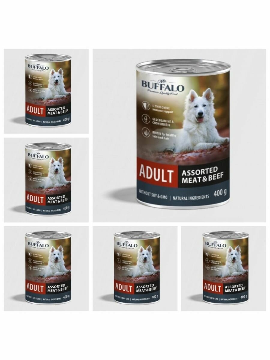 Купить Mr.Buffalo Консервы для собак Мясное ассорти с говядиной 400г В406 0.400 кг 61521 (6 шт) с доставкой по всей России.