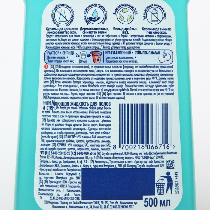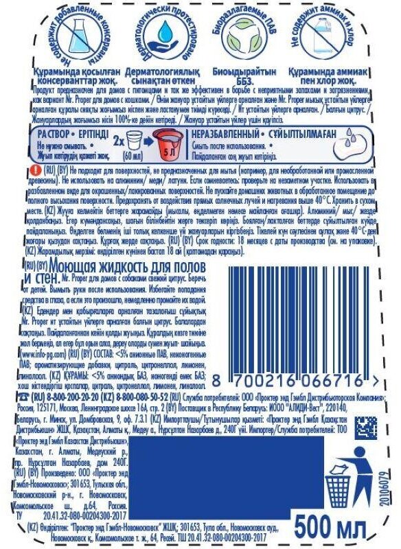 MR PROPER Моющая жидкость для полов и стен для домов с собаками Свежий Цитрус 3×500мл: сравнение цен, характеристики, фото, актуальное наличие и цены.