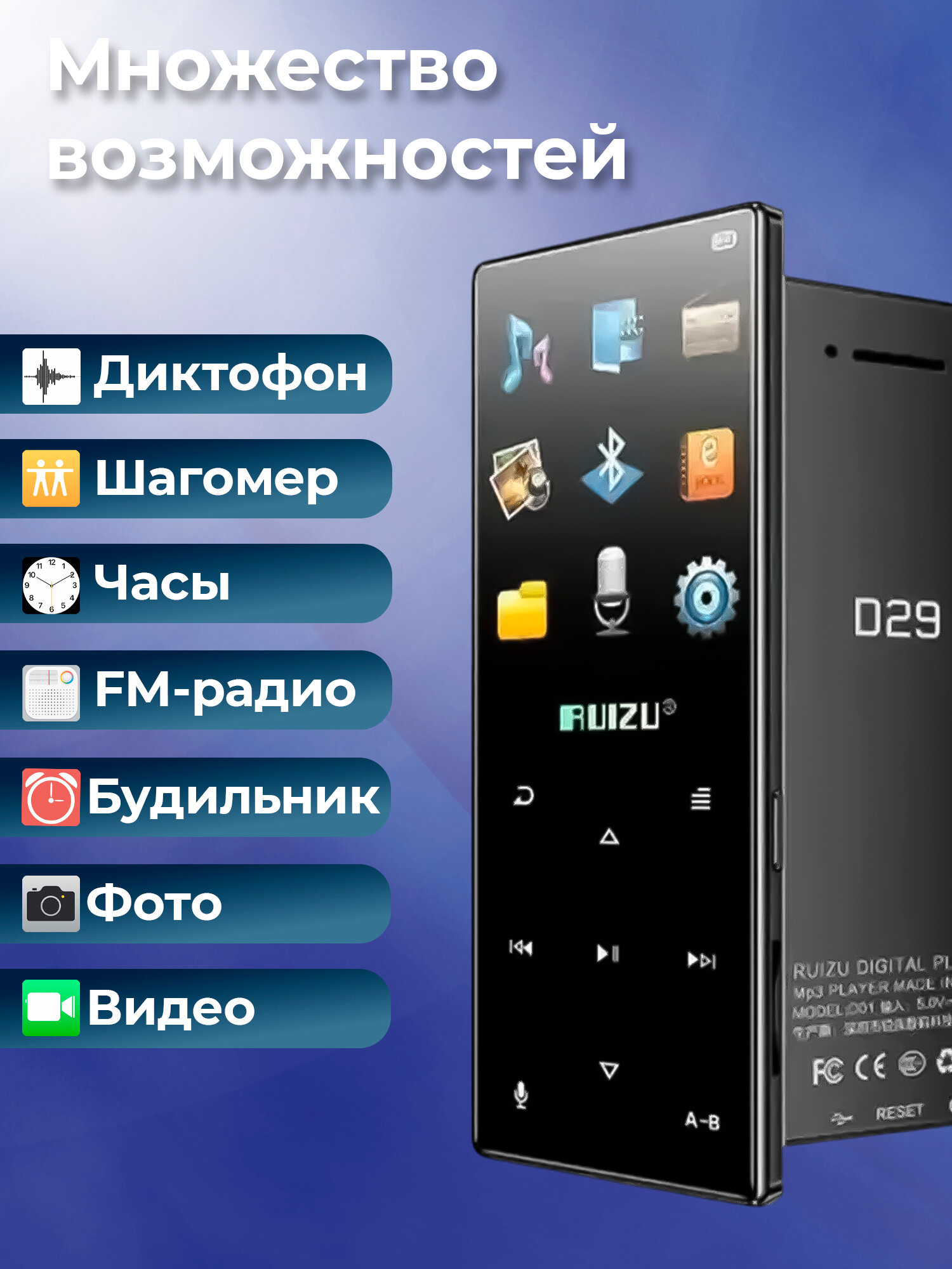 МР3 Плеер Hi-Fi с Bluetooth RUIZU D29 8Gb Black, для музыки, видео, фотографий: сравнение цен, характеристики, фото, актуальное наличие и цены.