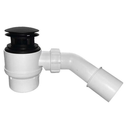 Сифон бутылочный для ванн и душевых поддонов с внутренним переливом. Решетка слива диаметром 70мм. Пробка, закрывающая слив воды тип "клик-клак" диаметром 70мм. Материал пробки и решетки - латунь. Выход сифона для соединения с канализацией диаметром 40/50мм. Цвет решетки слива и пробки - матовый черный. Высота гидрозатвора - 50мм. Высота тела сифона - 92,5мм. Особенность этого сифона - возможность его прочистки сверху, не разбирая и не отсоединяя сифон от прибора. В комплекте идет крючок для удобства вынимания внутренней колбы для прочистки и специальный ключ для удобства закручивания слива сифона.