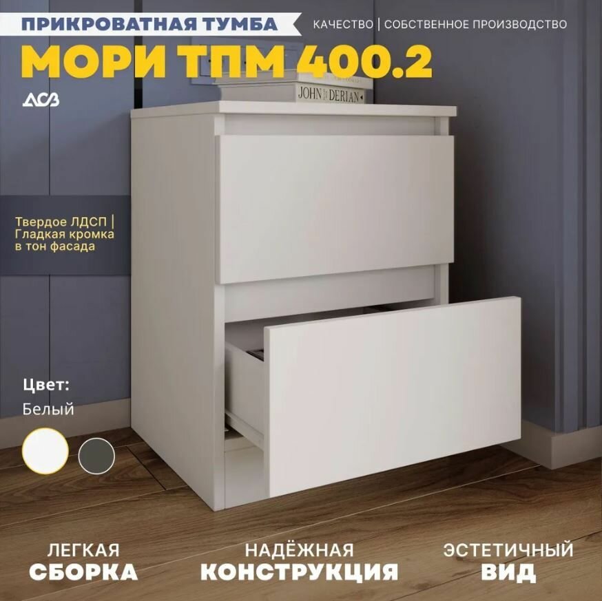 Купить МС Мори Тумба ТПМ 400.2 Белый (прикроватная, с ящиком, для спальни, напольная) с доставкой по всей России.