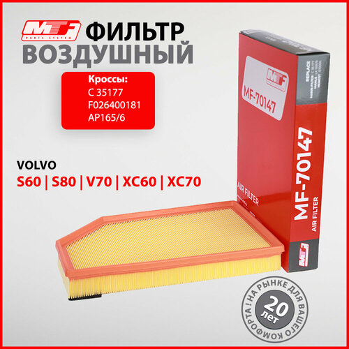 Воздушный фильтр MF-70147 предназначен для поддержания эффективности работы двигателя моделей VOLVO S60/V60 II, S80 II, V70 II, XC60, XC70 II . Он очищает поступающий воздух от пыли и грязи, препятствует преждевременному износу ДВС и продлевает срок его службы.